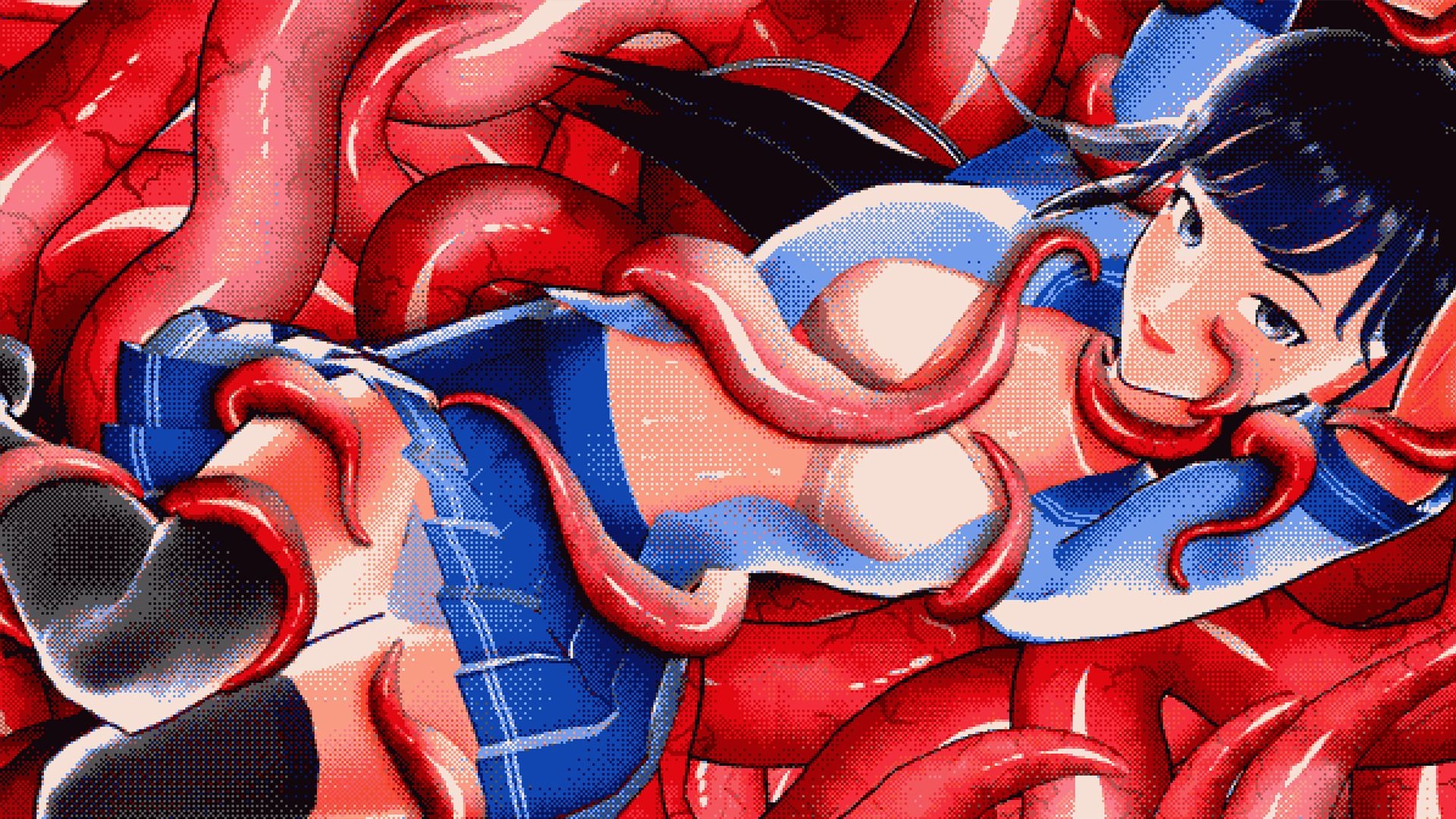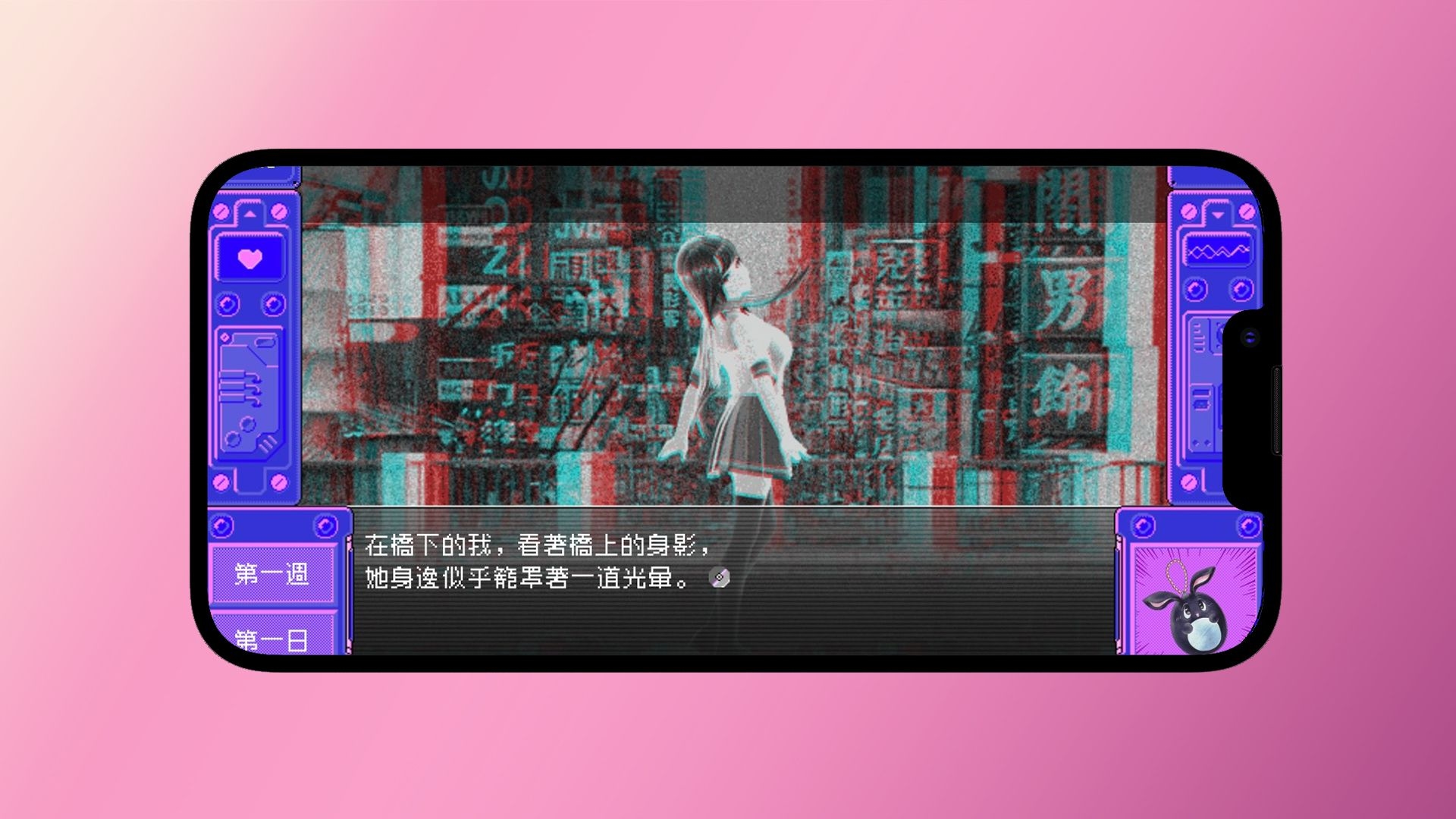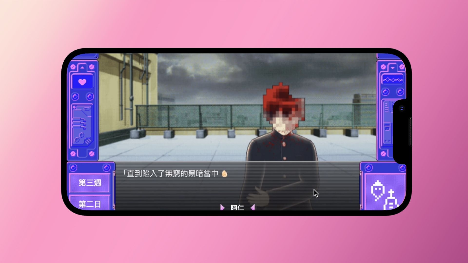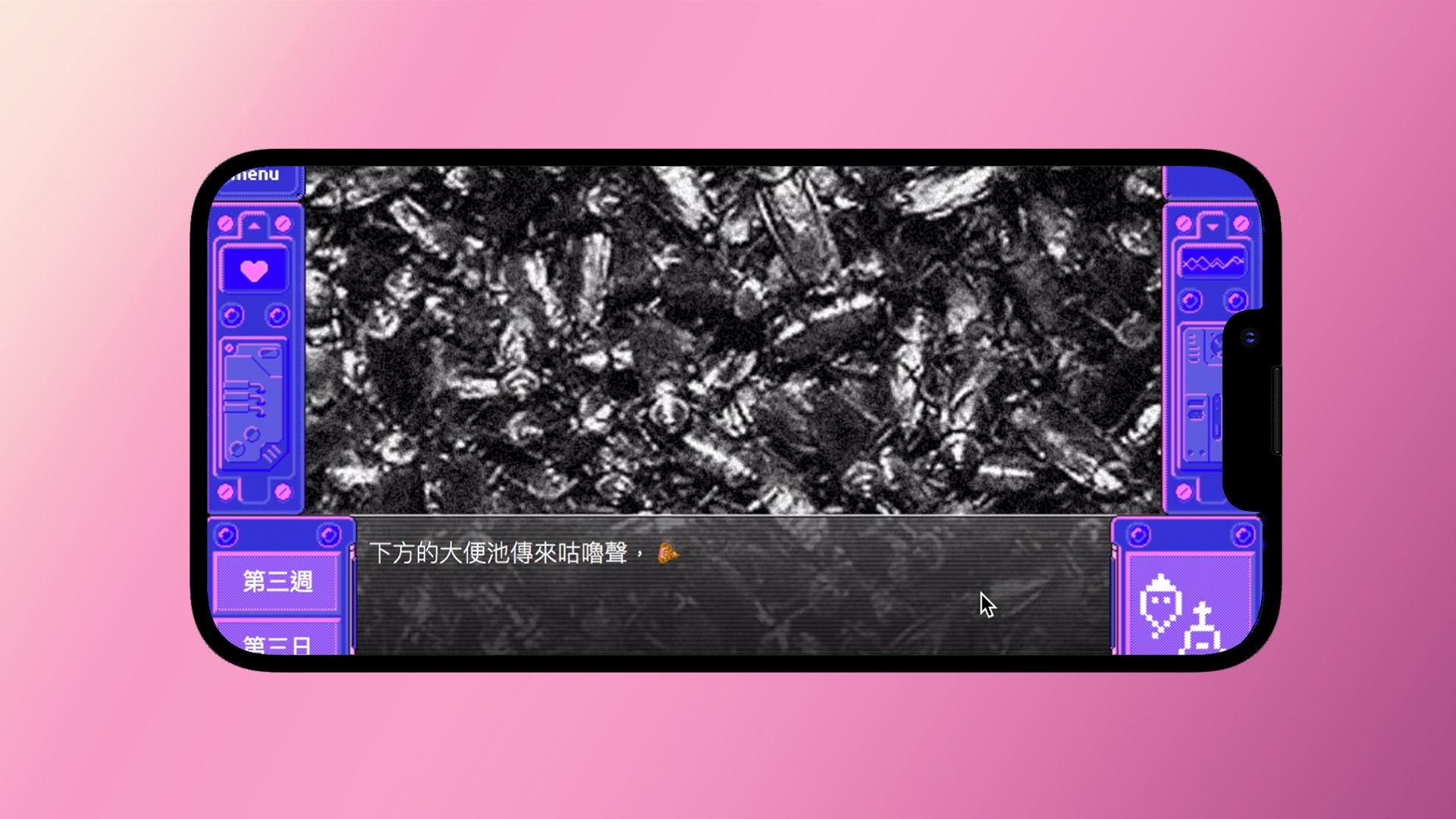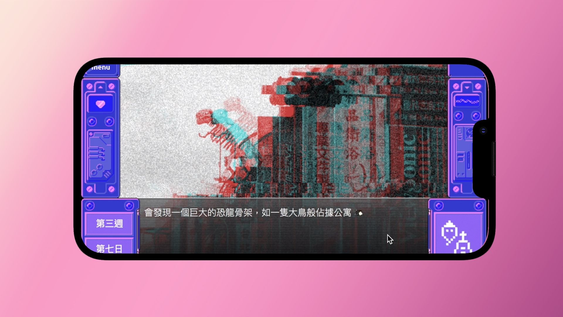 She, You, and Her is an interactive mobile game that draws inspiration from the once-popular H-Game genre. It takes the form of a visual novel (NVL) constructed with multiple narrative threads, sound, and a large number of images. The story is set in Taipei in the 1990s, and players follow the perspective of a high school student protagonist as they travel through various scenes, from electronic markets to bookstores selling pirated DVDs and erotic magazines.