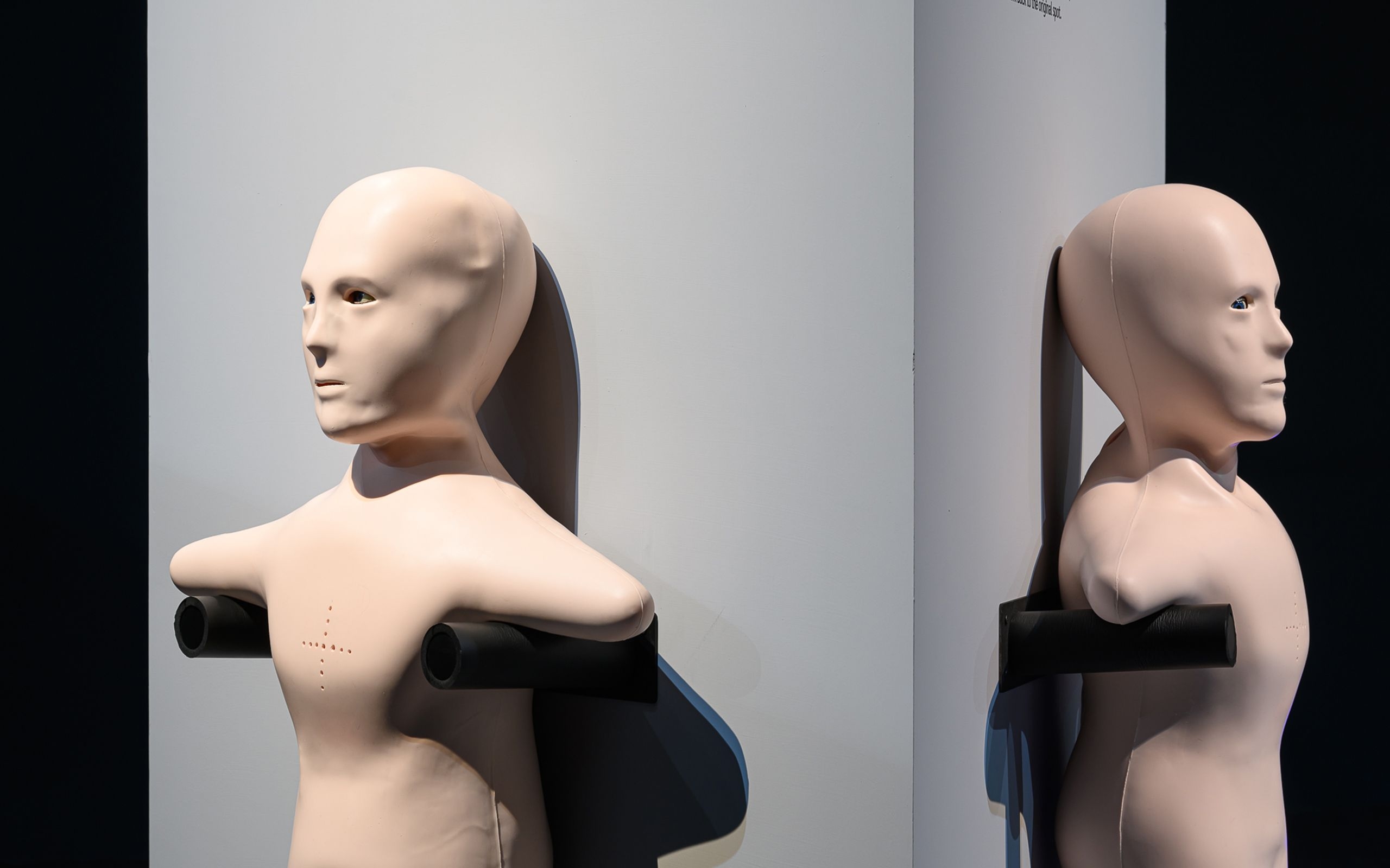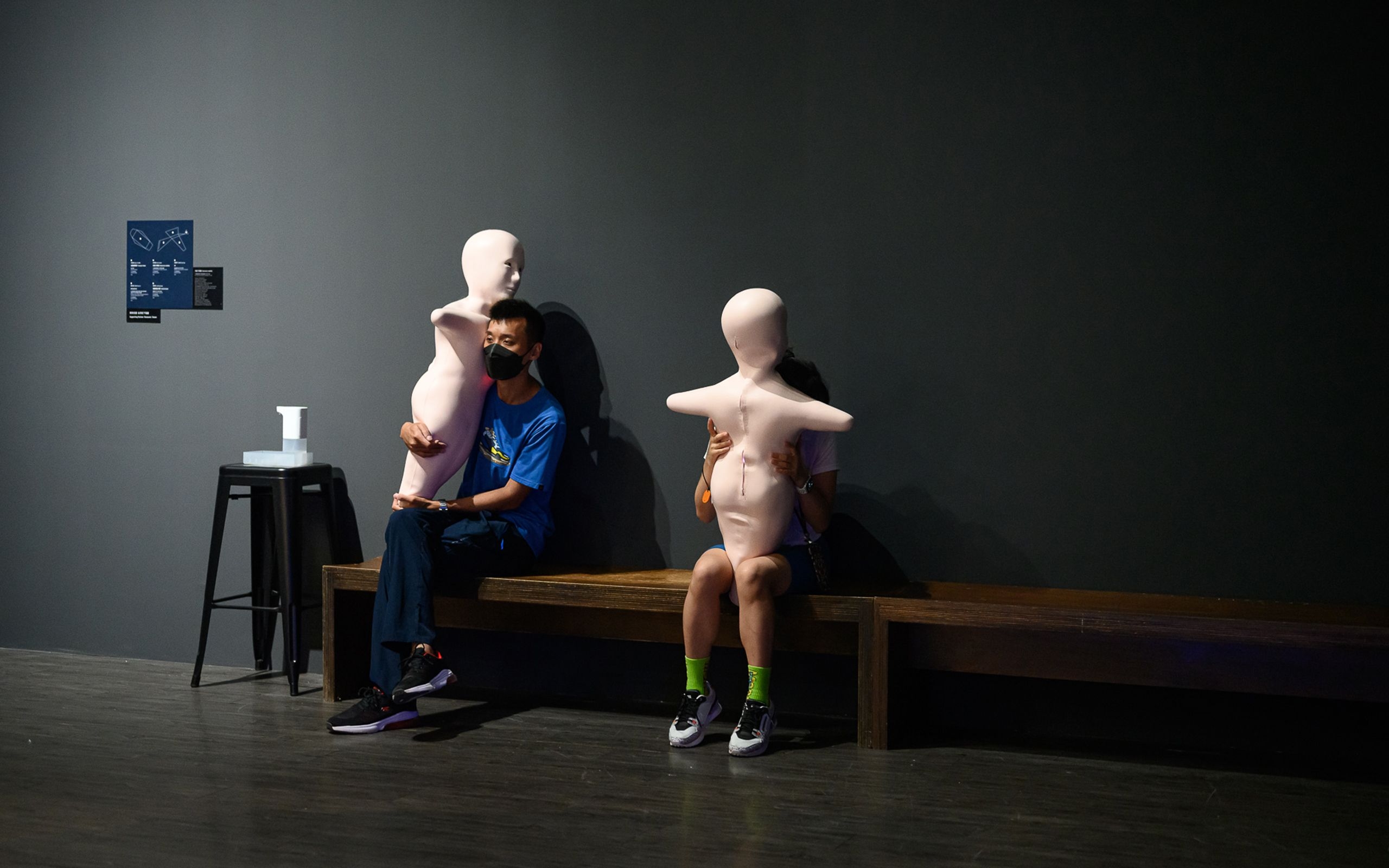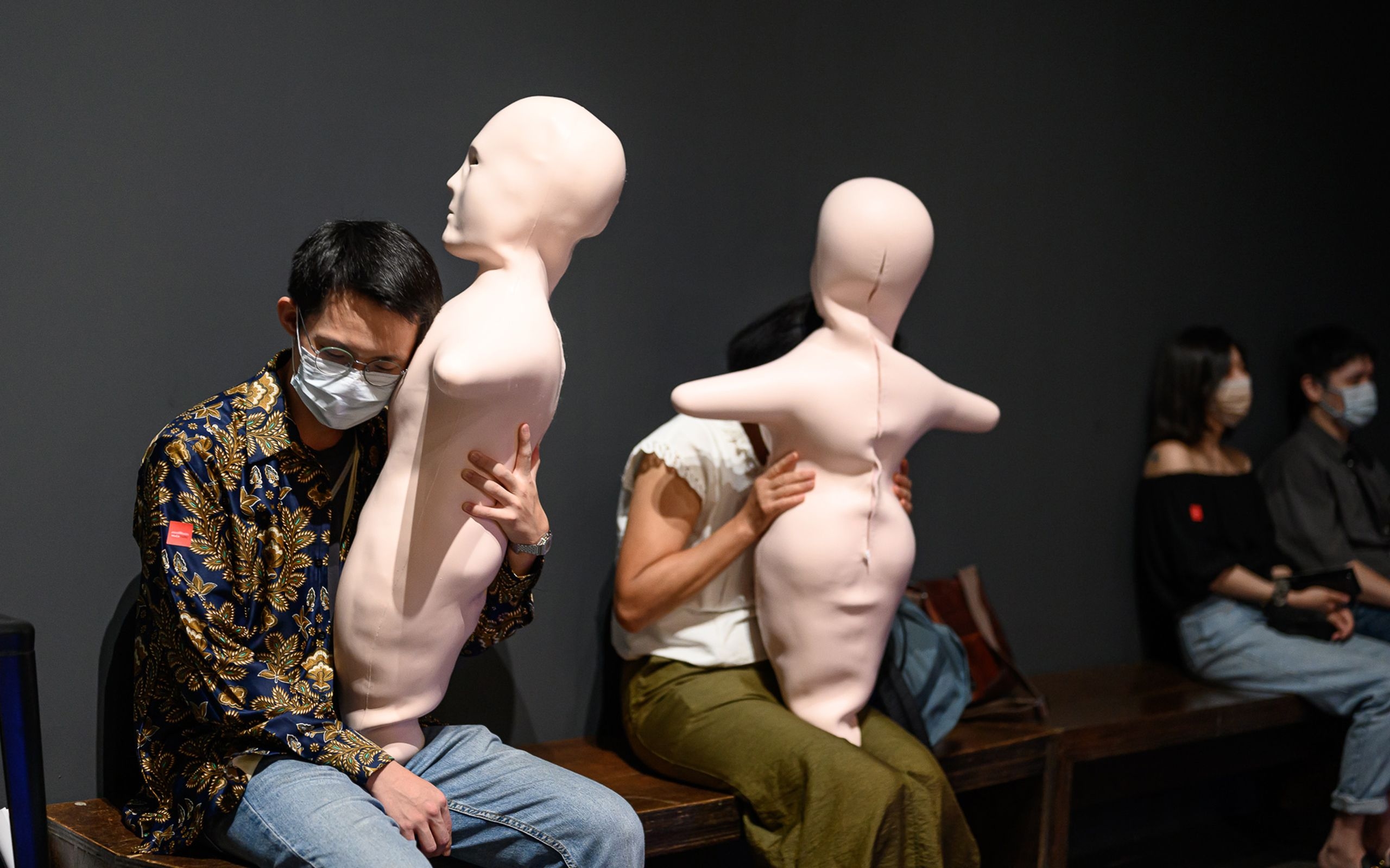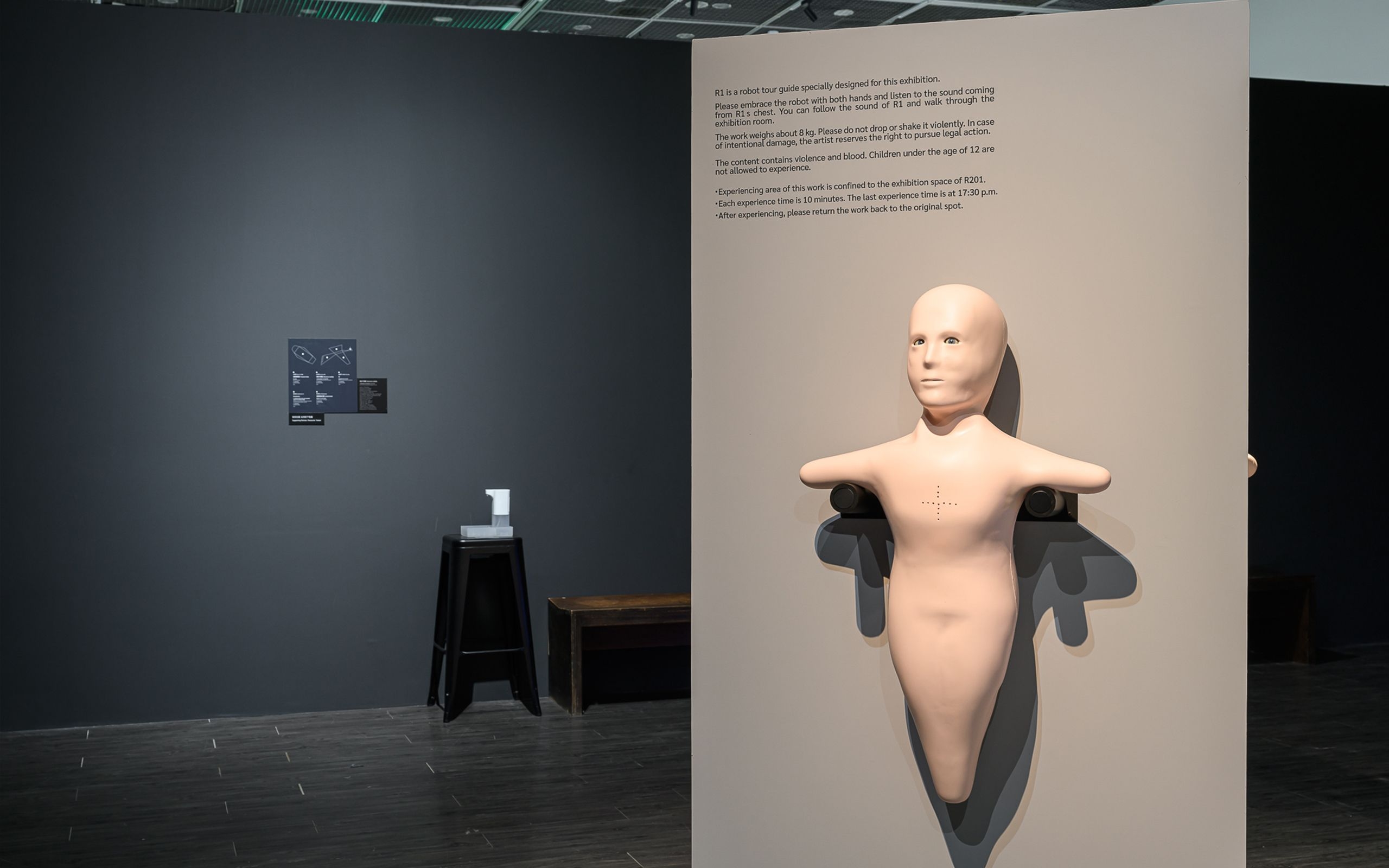 R1 is inspired by “Telenoid R1,” a robotic system produced by the Japanese inventor, Ishiguro Hiroshi. Although the system failed in the end, CHANG Ting-Tong employs the feature of the robot – “the uncanny lifelikeness,” to engage the audience in a deep exploration of the relationship between humans and technology. In the exhibition, three robots suspended in the air can be seen. Their customized silicon skin layer creates a more delicate tactile feeling. These robots are implanted with a speaking device. When sounds are made by these eerie robots, which indeed look like spirits, the audience is prompted to contemplate the essence of humanity and the nature of existence. This work reveals the future development of humanoid androids, as they will evolve to possess human-like appearance, characteristics, feelings, and personalities. This is bound to destabilize the definition of “being human” and further expose the complicated relationship between contemporary people and technology, one that is characterized by both fear and co-dependence.