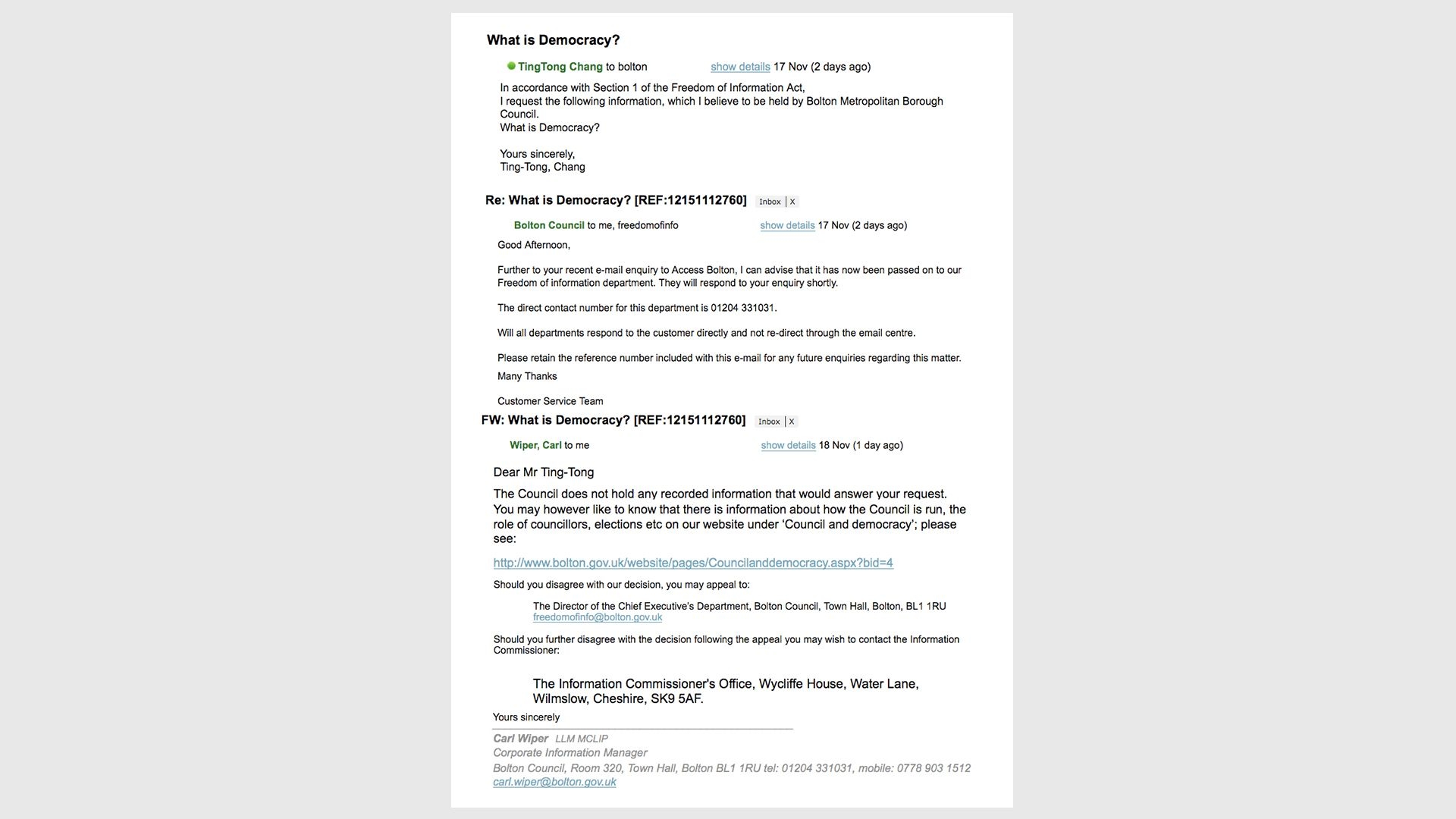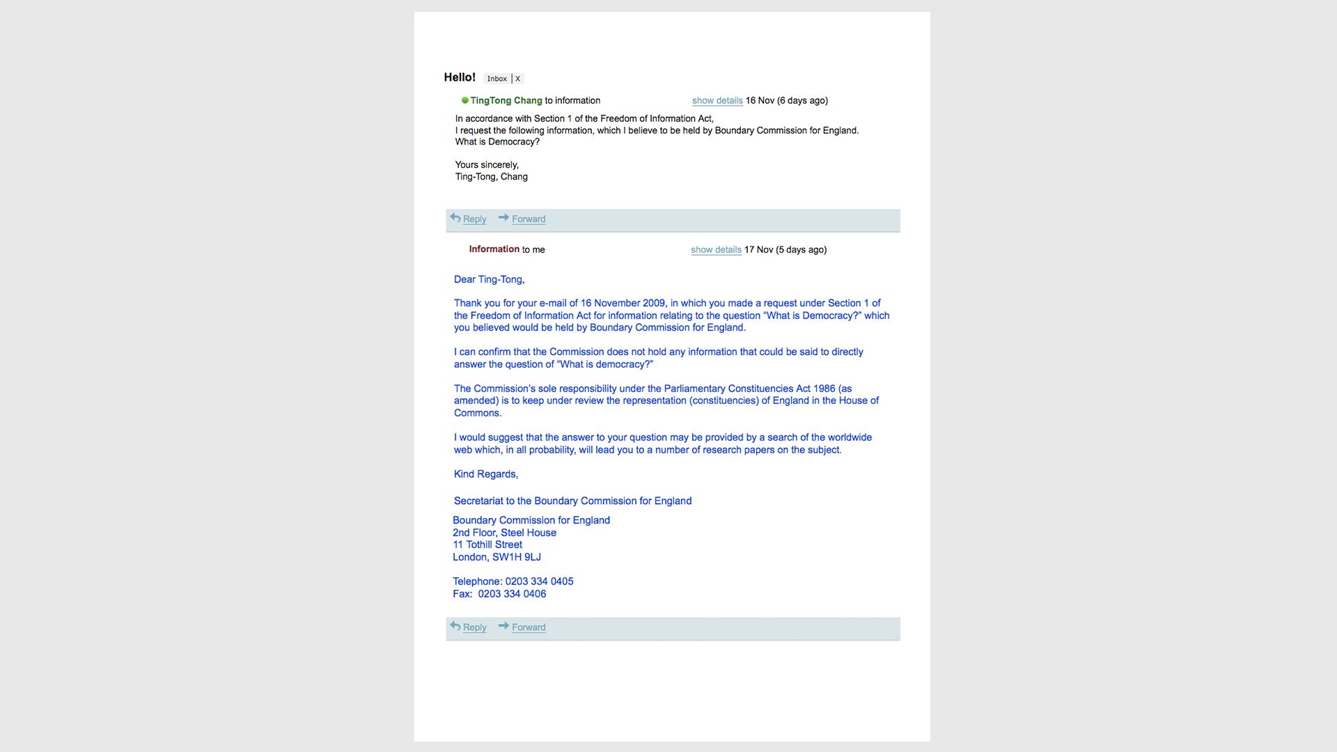 Under the signature of Ting-Tong Chang, hundreds of emails were sent to different institutions. The question as follow: