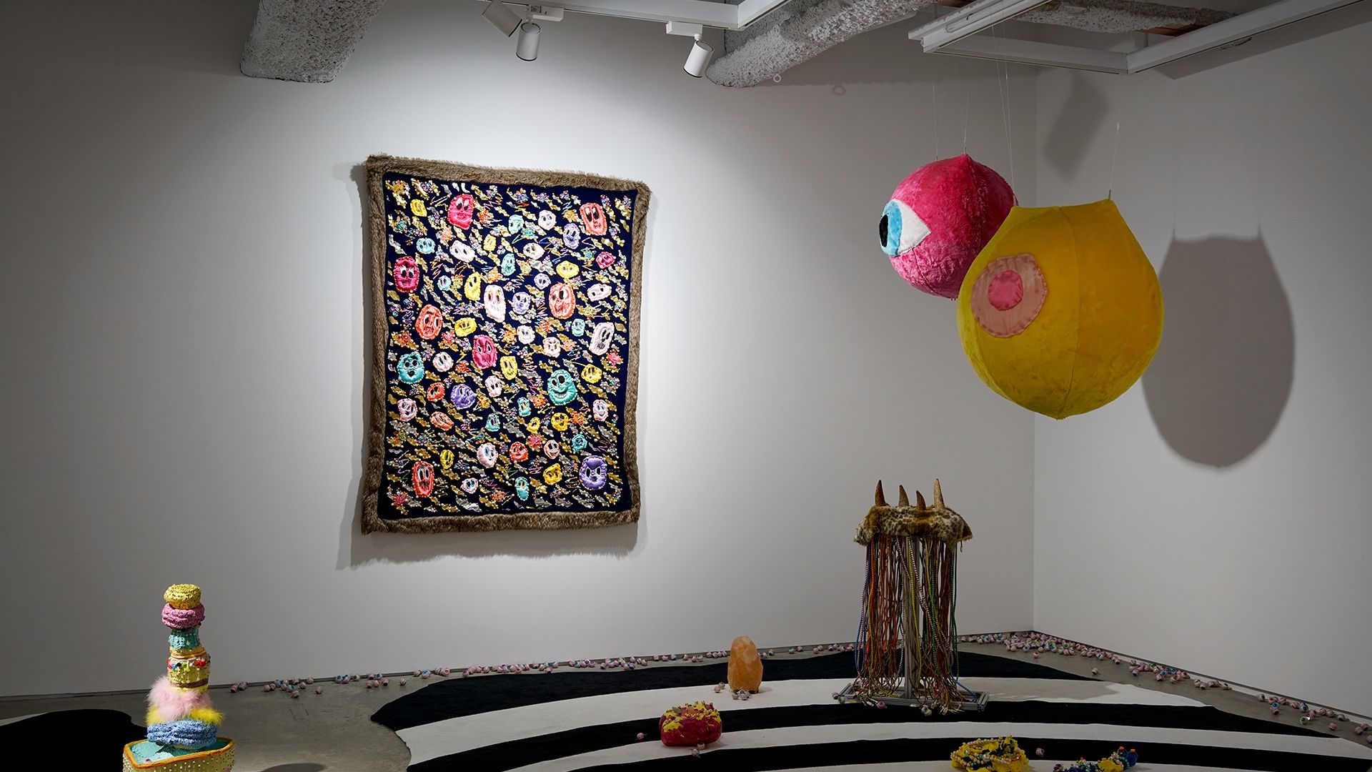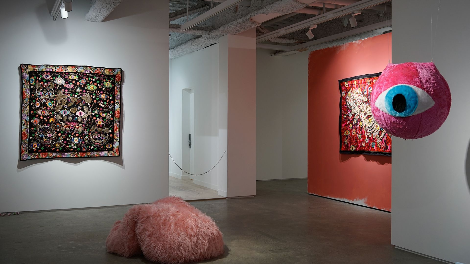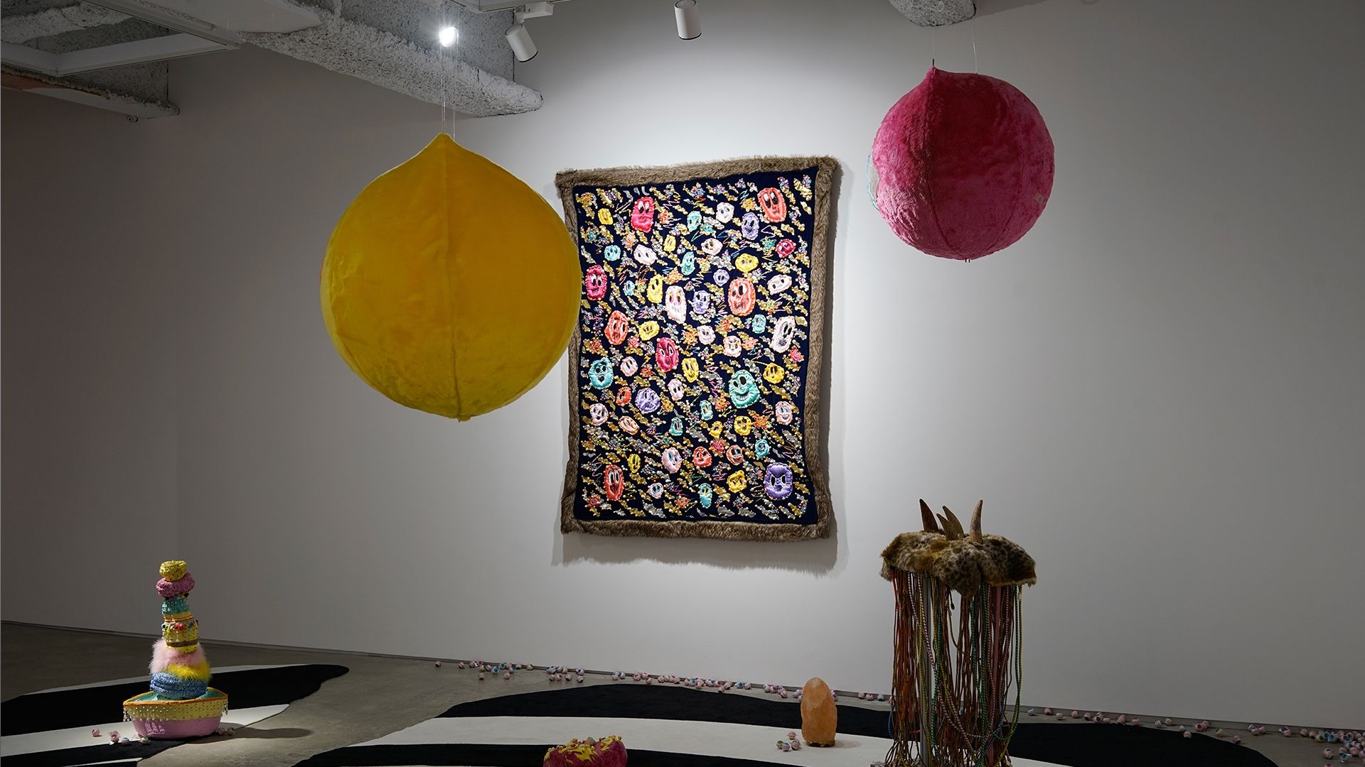 "Little Hell" exhibition candidly presents the artist's aesthetic of creation, interweaving humour, satire, and introspective musings. Recurring elements in the artworks, such as eyes, skulls, bones, and wings, have been consistent motifs in Chang’s oeuvre. Organic and inorganic materials, soft fabrics and metal objects, cuteness and ugliness, nobility and vulgarity, independence and collaboration, all intertwined. Behind the ironic disguises, one can catch a glimpse into the artist’s creative trajectory, incorporating intricate layers of messages and novel creative direction.