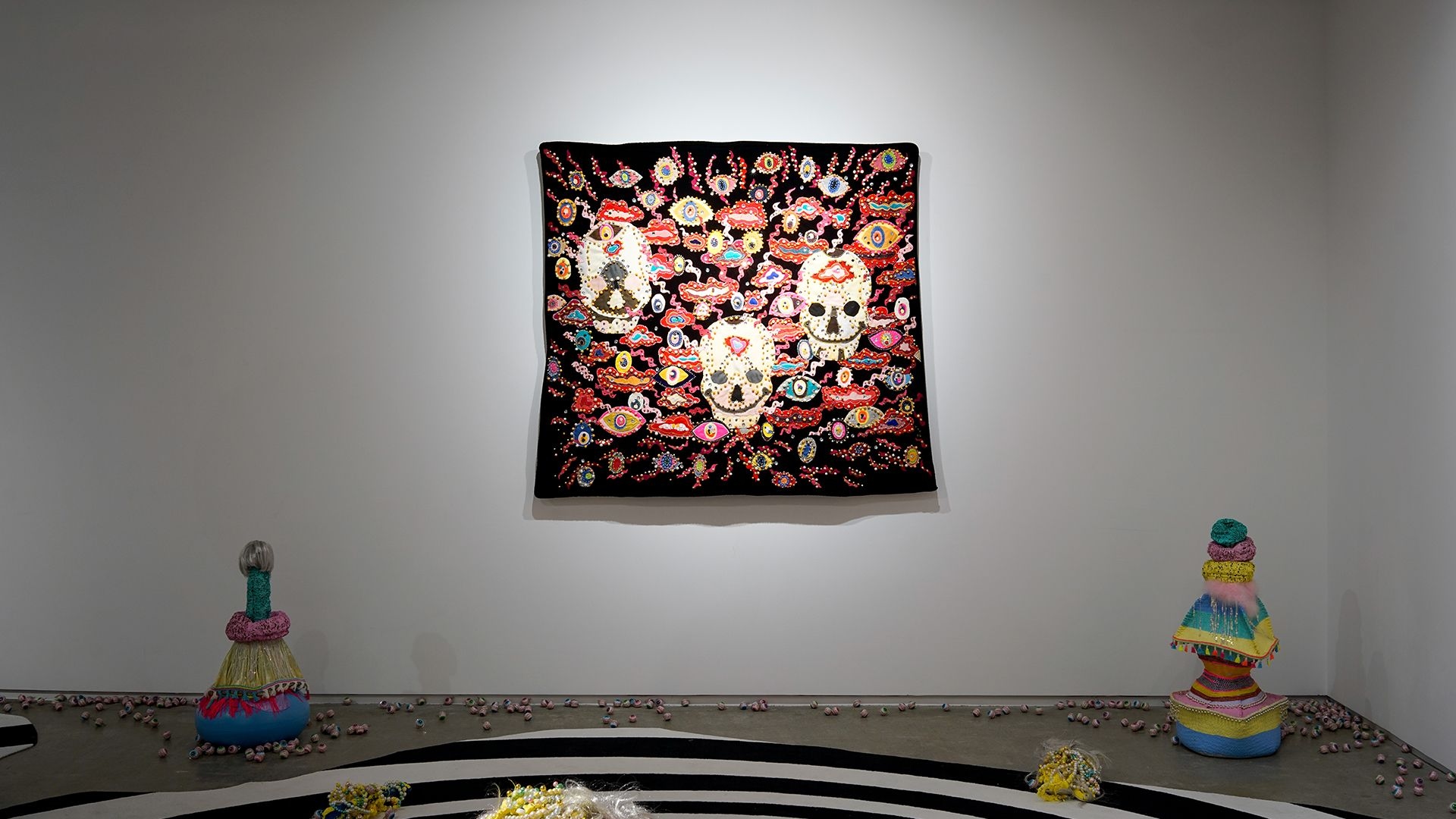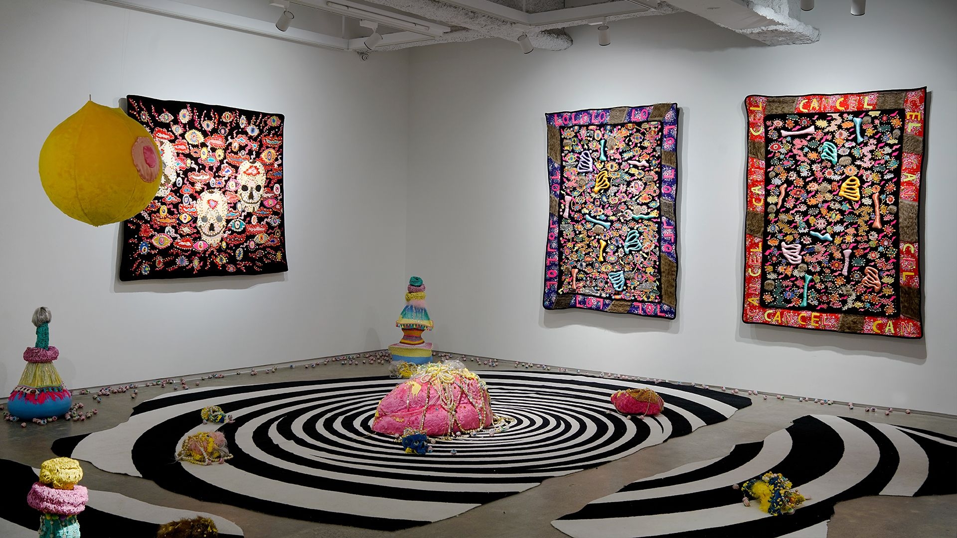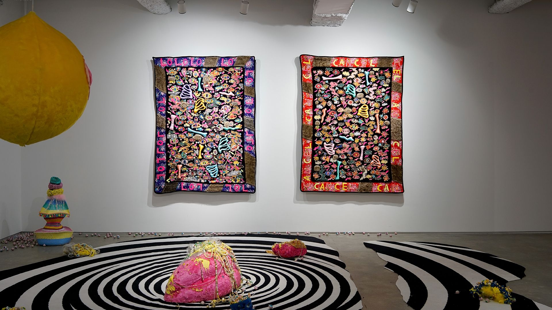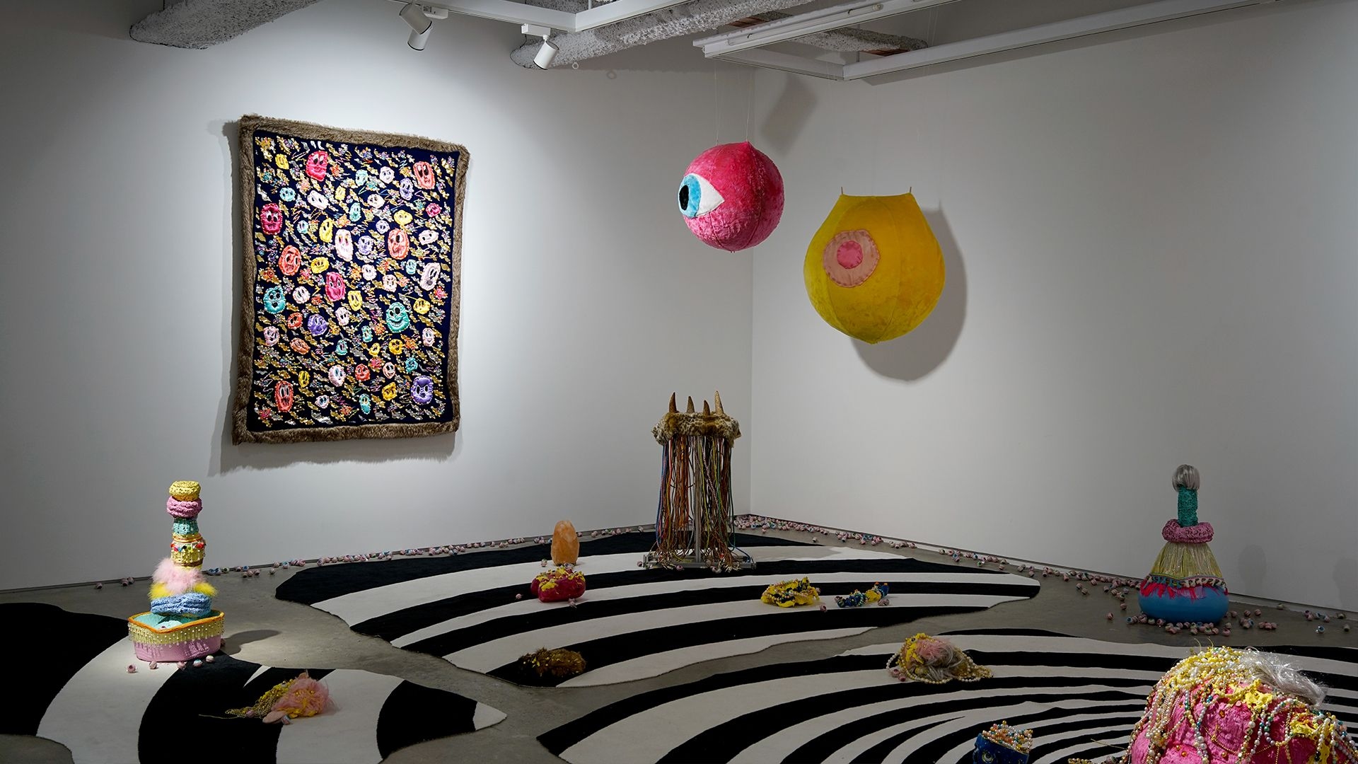 "Little Hell" exhibition candidly presents the artist's aesthetic of creation, interweaving humour, satire, and introspective musings. Recurring elements in the artworks, such as eyes, skulls, bones, and wings, have been consistent motifs in Chang’s oeuvre. Organic and inorganic materials, soft fabrics and metal objects, cuteness and ugliness, nobility and vulgarity, independence and collaboration, all intertwined. Behind the ironic disguises, one can catch a glimpse into the artist’s creative trajectory, incorporating intricate layers of messages and novel creative direction.