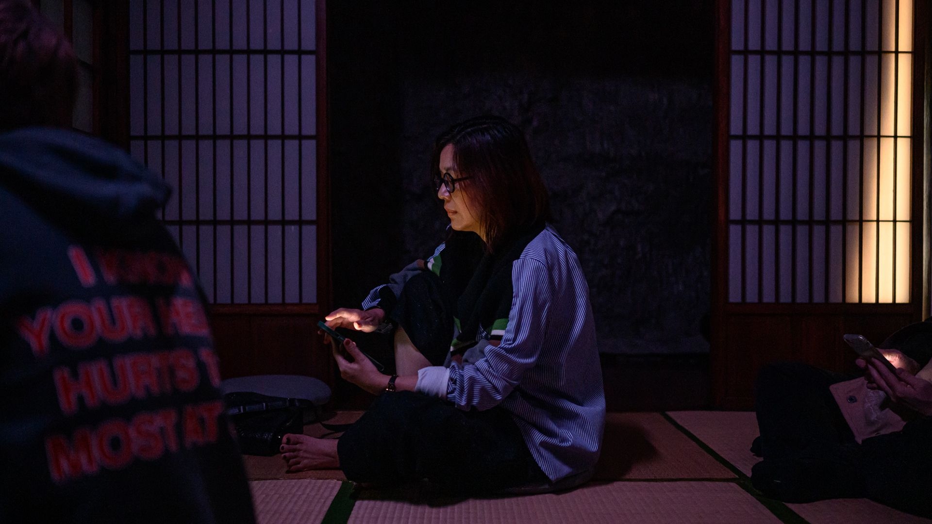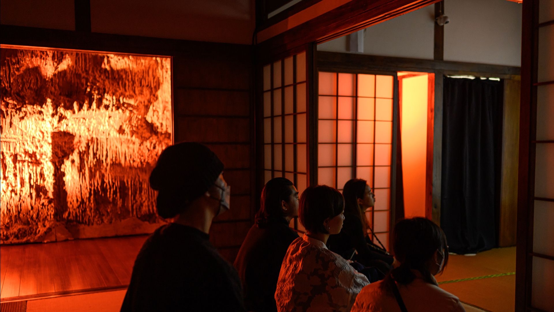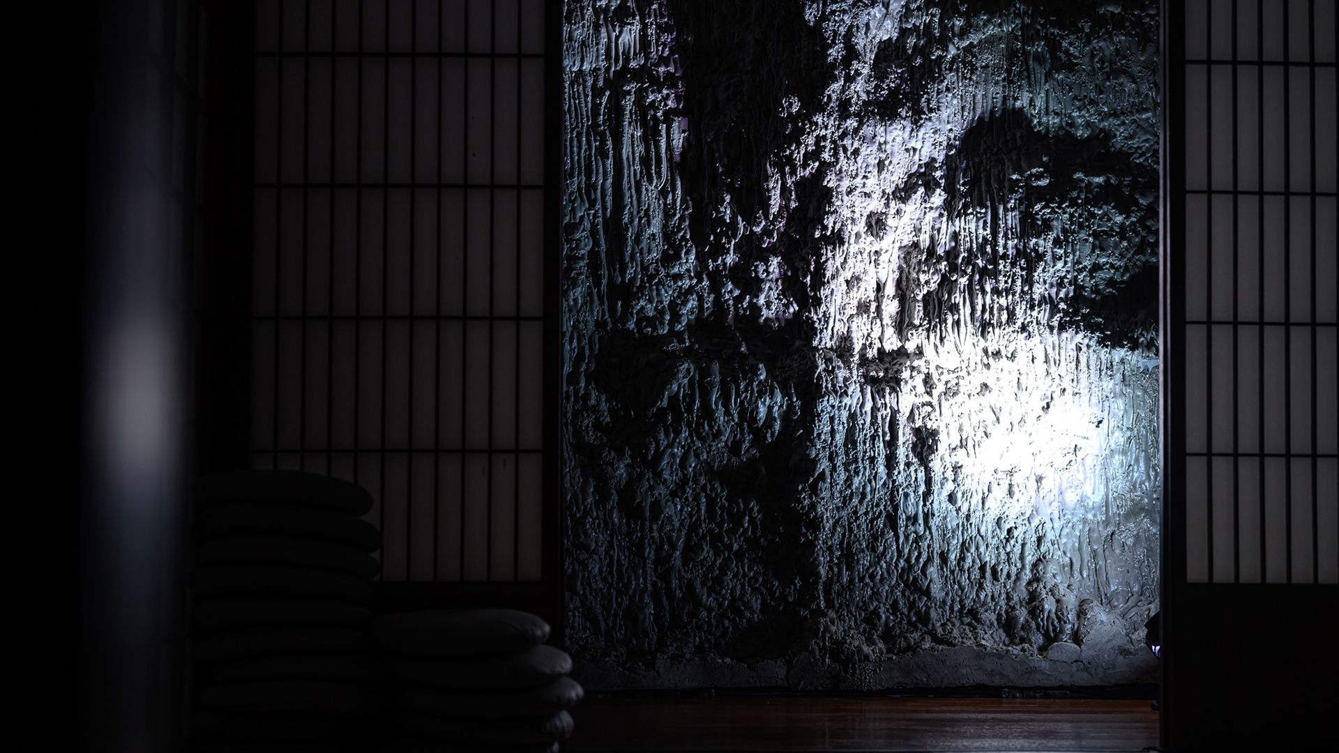 UZU is also a site-specific installation situated inside a traditional Japanese building, adding further contextual layers to both the forms and content of the film. Employing a dynamic multi-channel audio and lighting system, the project achieves a greater sense of perceptive depth by stimulating an array of sensory illusion—the subtle echoes of footsteps, resonating claps of thunder, lingering breaths—to extend the perceptual presence of characters beyond the cinematic realm.